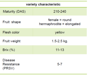 • ثمارها متجانسة وكبيرة الحجم ولحمها أصفر سميك وثابت وجذاب.